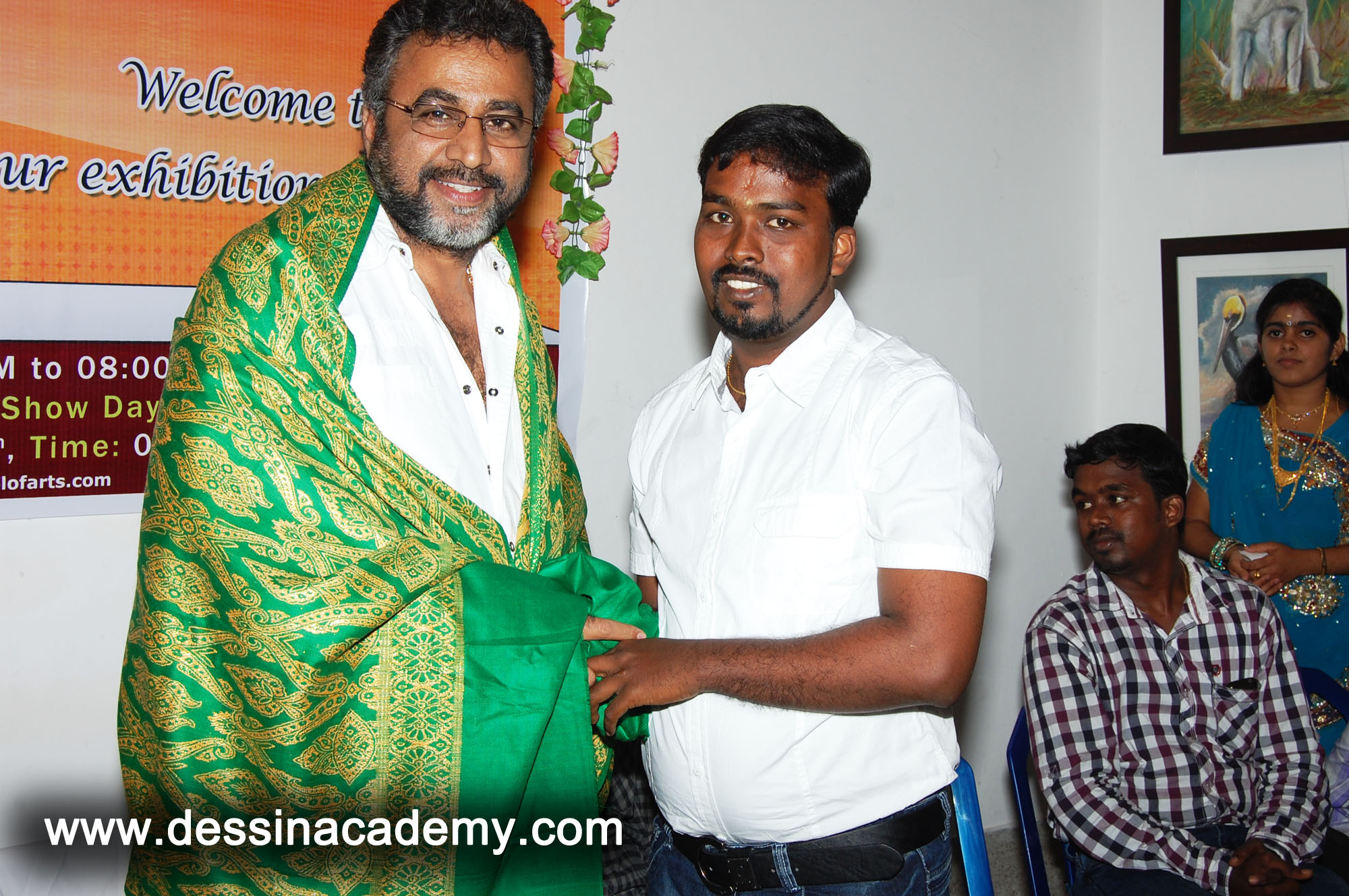 ‘’Kalaivalarmani Artist. Mr. R. Rajendran’’, the founder of Dessin school of arts. He graduated from the government college of fine arts with bachelor and Masters of fine arts majoring in painting. He has also exhibited his works of arts with a number of solo and group exhibition. Indian traditional paintingis focused dominantly in the painting of Kalaivalarmani Artist Mr. R. Rajendran.